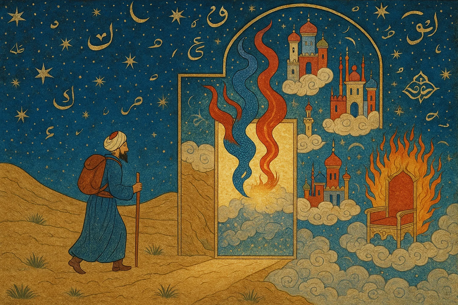 Eserler genellikle feleklerin yapısı, güneş, ay ve yıldızların tabiatı, gezegenlerin hareketleri gibi konularla başlar. Göklerin katmanları, meleklerin makamları ve ulvî âlemin yapısı kozmografik bir düzen içinde açıklanır.