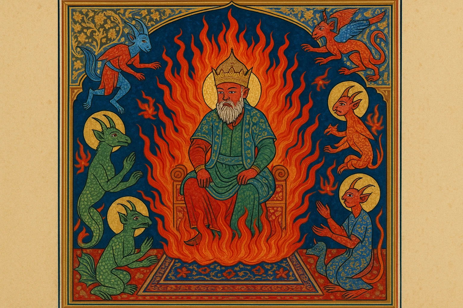 Ateş Tahtındaki Cin (Yapay Zekâ ile Oluşturulmuştur.)