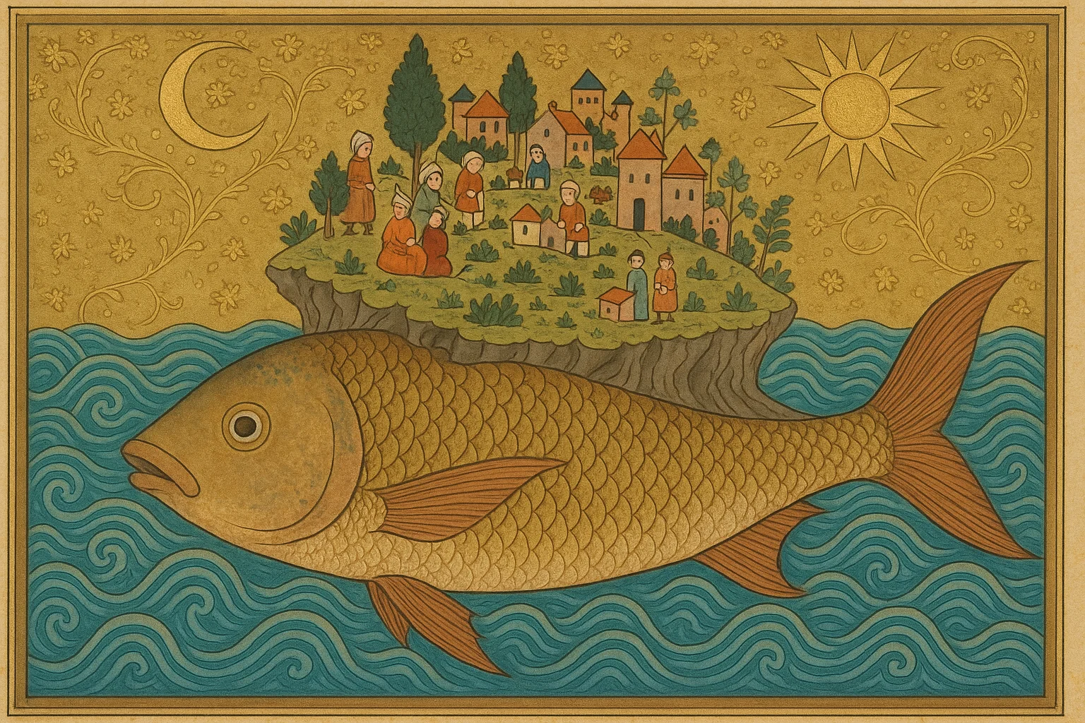 Ada Taşıyan Dev Balık (Yapay Zekâ ile Oluşturulmuştur)