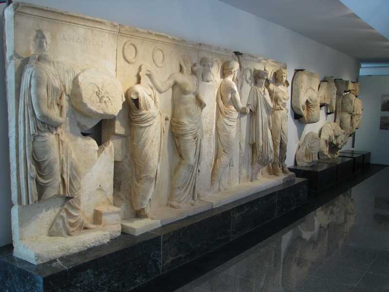 Müzenin iç ve dış avlusunda Afrodit Tapınağı’na ait bazı mimari elemanlar, kült heykel parçaları ve tapınağın işlevine dair bilgiler sunan buluntular yer almaktadır.