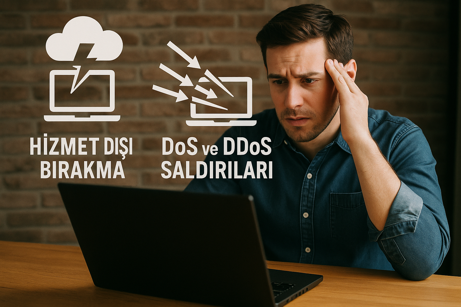 Hizmet dışı bırakma saldırıları, hedef sistemin kaynaklarını tüketerek hizmet sunumunu engellemeye yönelik tehditlerdir. DoS saldırıları genellikle tek bir kaynaktan yönlendirilirken, DDoS saldırılarında bu işlem farklı cihazlardan eş zamanlı olarak gerçekleştirilir. DDoS saldırıları, sistemleri çökertmek veya erişilemez hâle getirmek amacıyla yoğun trafik yükü oluşturarak kaynakların tükenmesine neden olur. Özellikle finansal kuruluşlar, sağlık sistemleri ve kamu portalları gibi yüksek erişilebilirlik gerektiren sistemler bu saldırıların öncelikli hedefleri arasında yer alır. Bu saldırılar sırasında sunucuya yönlendirilen istekler sıklıkla geçersiz veya eksik bilgiler içerir ve sistemin işlem kaynakları boşa harcanır. Yüksek etkili DDoS saldırılarıyla başa çıkmak için güvenlik duvarları, yük dengeleyiciler ve davranışsal analiz sistemleri birlikte kullanılmalıdır. Anomali tabanlı tespit mekanizmaları, bu tür saldırıların erken evrede tanınmasına olanak sağlar; ancak dağıtık yapılarından ötürü saldırının kaynağını tespit etmek çoğu zaman güçtür.