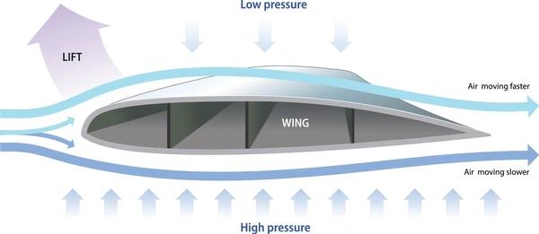 The shape of the airfoil causes differences in airflow speed across its surfaces: