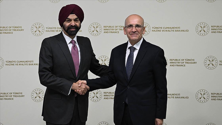 Bakan Şimşek ve Dünya Bankası Grubu Başkanı Banga (Anadolu Ajansı)
