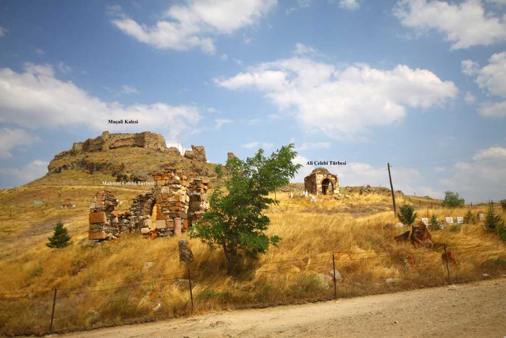 Kalenin batı eteğinde iki türbe yer almaktadır. Kalenin yakınında bulunan türbe Ali Çelebi Türbesi, aşağıda bulunan ise Mahmut Çelebi Türbesi'dir. Kitabelere göre türbeler 871/1466 veya 875/1471 tarihlerinde inşa edilmiştir. Her iki türbe sade mimariye sahiptir; süsleme unsuru bulunmamaktadır. Mahmut Çelebi Türbesi’nin kubbesi yıkıktır ve mezar taşı üzerinde Kur'an-ı Kerim'in 112. suresi yazılıdır. Türbelerde ayrıca, merhumun adı ve ölüm tarihleri yer almaktadır.