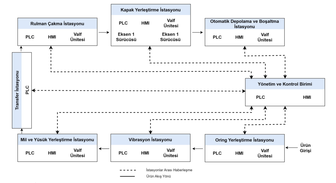İstasyonlar ile ana kontrol merkezi arası haberleşmesine ait blok diyagram (DergiPark)