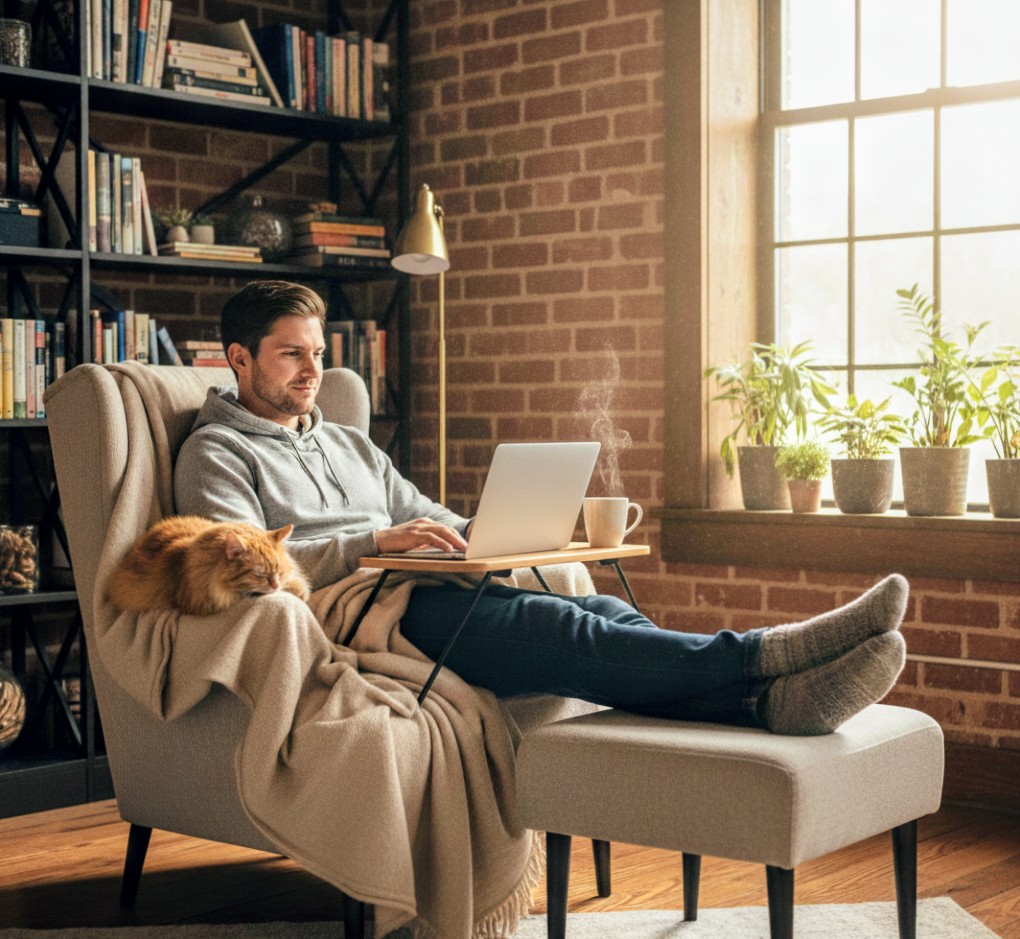 Rahatça Hayatını Yaşayan Adam Görseli (Yapay Zekâ ile Oluşturuldu)