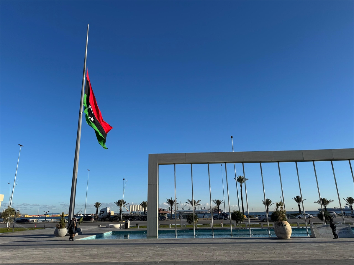 Libya'da milli yas sebebiyle yarıya indirilen bir bayrak, 24 Aralık 2025 - (Anadolu Ajansı)