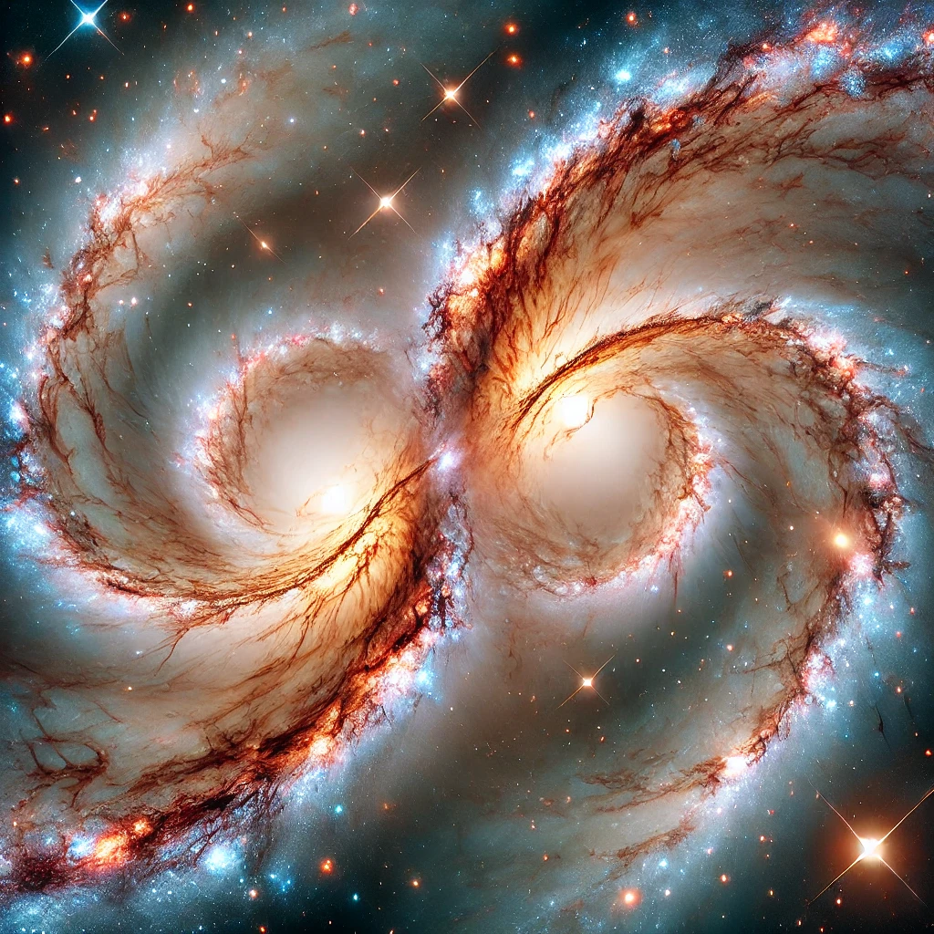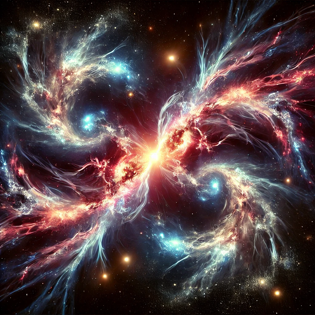 Yapay zeka ile görselleştirilmiş galaksi birleşmesi temsili