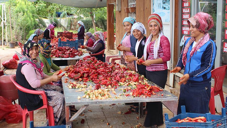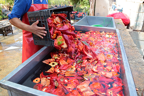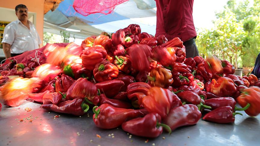 1. Yetişen kırmızıbiberler fabrikaya getirilir.