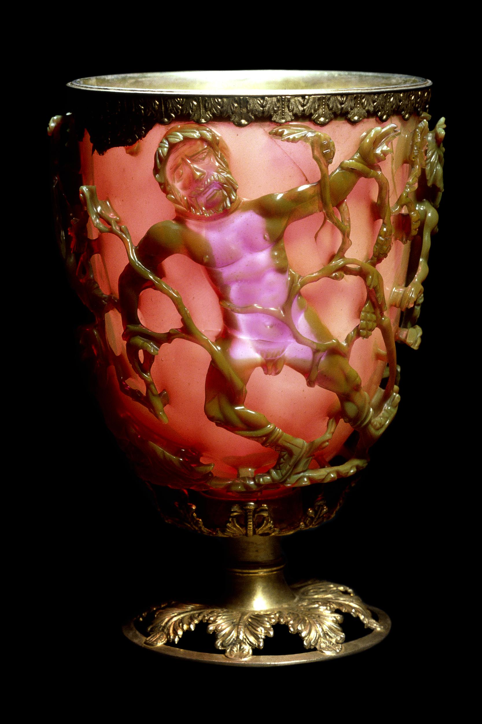 Lycurgus Kupası, M.S. 4. yüzyılda Roma İmparatorluğu dönemine ait olan ve hem sanatı hem de bilimsel özellikleriyle dikkat çeken nadir bir eser. Işığa bağlı olarak renk değiştiren kupa, Yan taraftan gelen ışıkla yeşil renkte görünürken, içten aydınlatıldığında kırmızı renge dönüşür. Bu optik etki, camın içine karıştırılan nano boyuttaki altın ve gümüş partiküllerle sağlanmaktadır.