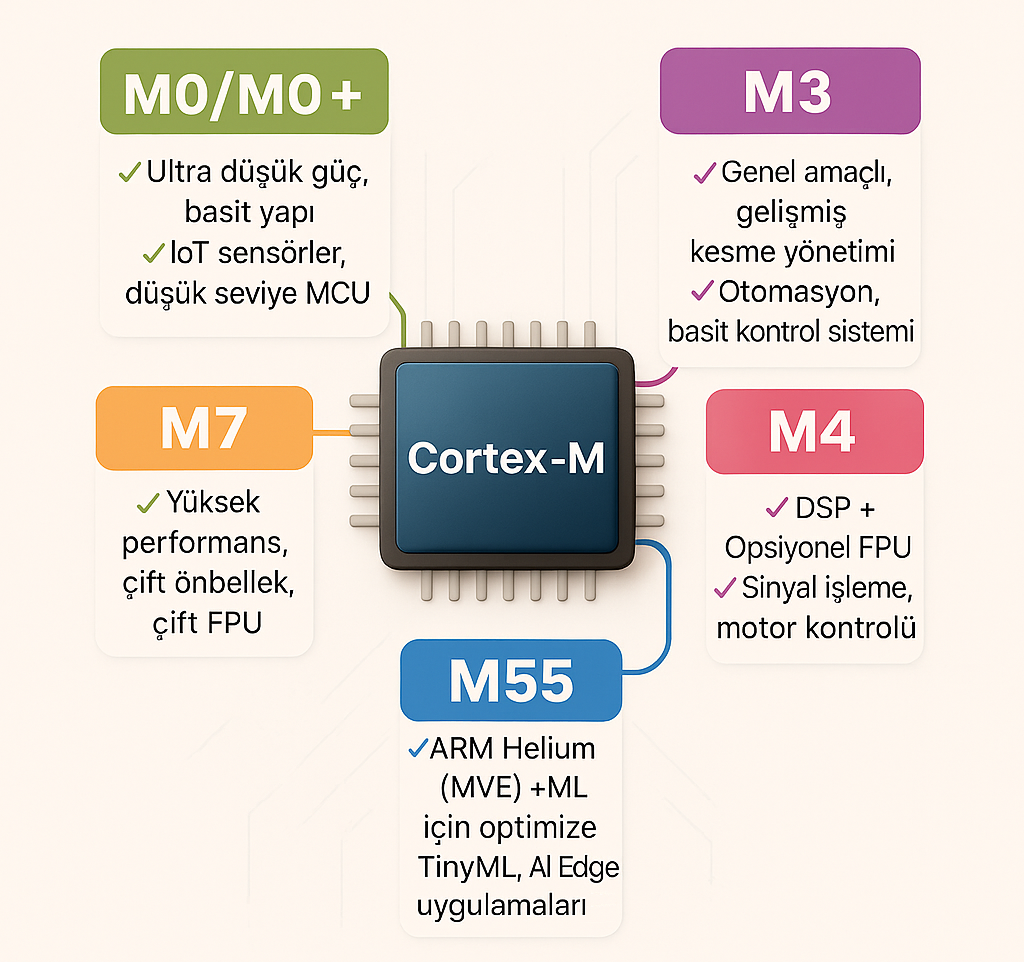 ARM Cortex-M Serisi Teknik Özellikler (Yapay Zekâ ile Oluşturulmuştur.)