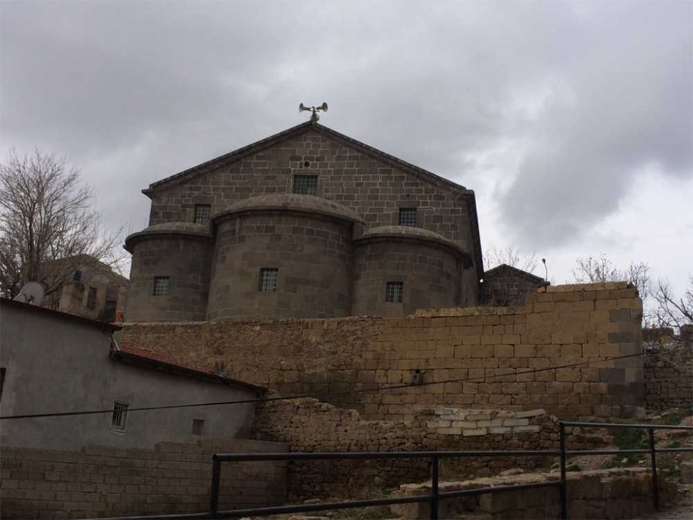 Yapı, doğu-batı doğrultusunda üç nefli bazilika planında inşa edilmiştir. Naos bölümü, her sırada dörder sütunun yer aldığı iki sütun dizisiyle üç sahına ayrılmıştır. Orta sahın, yan sahınlara kıyasla hem daha yüksek hem de daha geniştir. Yapının inşasında düzgün kesme bazalt taşı ile sarı trakit taşı kullanılmıştır. Batı cephesinde yedi bölümlü bir narteks yer almakta olup, bu bölüm yapıyı kuzey ve güneyden “U” şeklinde çevrelemektedir. Galeri katına güneybatı köşesinde yer alan ahşap merdivenle çıkılmakta ve bu kat, tıpkı narteks gibi üç cepheden devam etmektedir.