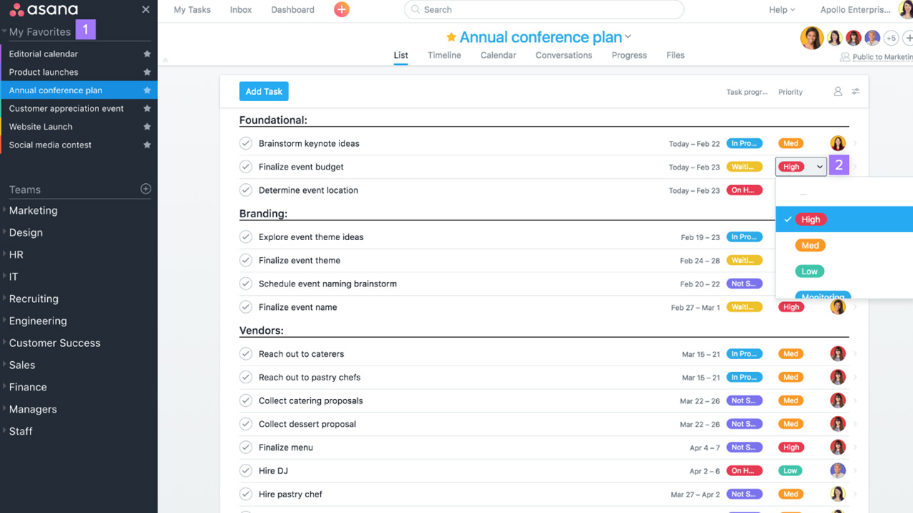 Kanban tarzı görünümleri sayesinde görev akışının görselleştirilmesi kolaydır. Farklı ekipler projelerini ve hedeflerini bu araçta senkronize ederek çapraz takım işbirliğini sağlar. Böylece mühendislik, pazarlama, tasarım vb. tüm ekipler, kimin ne yaptığını ve nelerin tamamlandığını anlık olarak görebilir. Asana, projelerin ilerleme durumunu “Göstergeler” (Status updates) ve “Portföyler” ile özet raporlar halinde göstererek yöneticilerin genel resme hâkim olmasına yardımcı olur.