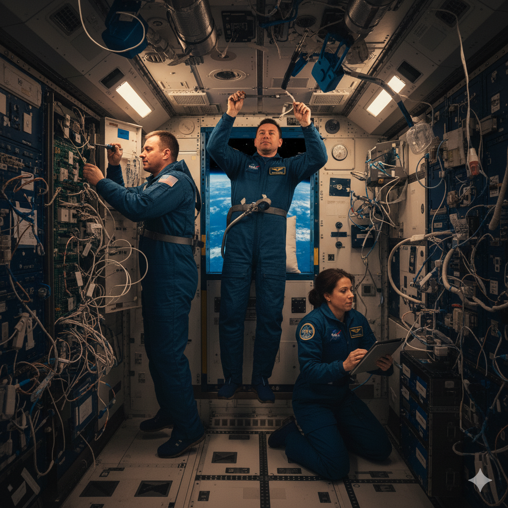 İstasyondaki teknik sistemlerin bakımı da astronotların sorumluluğundadır. Hava filtrelerinin değiştirilmesi, su geri dönüşüm sistemlerinin kontrolü, güneş panellerinin durumu, iletişim sistemlerinin testi gibi onlarca küçük görev, her gün tekrarlanır.【4】 Uzayda en küçük arıza bile hayati tehlike yaratabileceği için hiçbir ayrıntı ihmal edilmez. Her iş bir ekip çalışmasıdır; astronotlar sürekli yer ekibiyle iletişim hâlindedir. Gün içinde yapılan tüm işlemler kaydedilir, görüntüler Dünya’ya aktarılır, mühendisler anlık olarak geri bildirimde bulunur.
