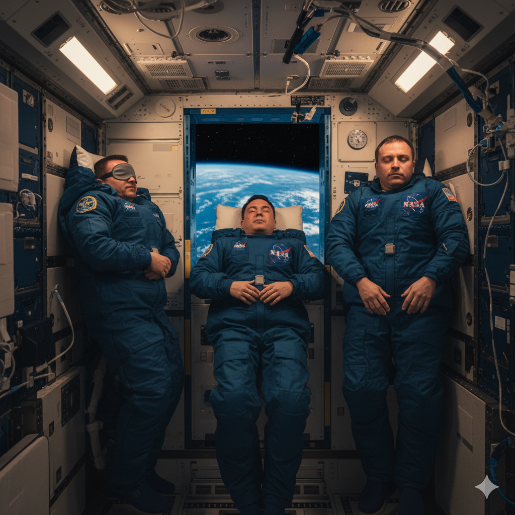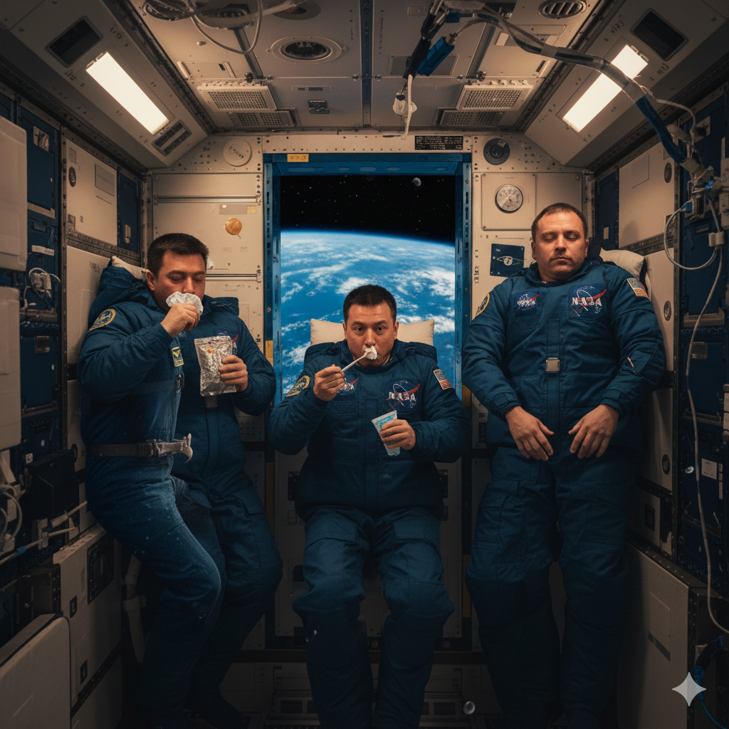 Sabah saat altıya doğru uyanan bir astronot, ilk olarak pencereden dışarı baktığında altındaki mavi gezegenin sessizce dönmekte olduğunu görür. Bulutlar kıtalar üzerinde beyaz ipek gibi süzülürken, atmosferin incecik çizgisi güneş ışığıyla parıldar. Ancak istasyondaki gün, duygusallığa fazla yer bırakmaz; görev dakikası dakikasına planlanmıştır. Astronotlar uyanır uyanmaz sağlık verilerini ölçer: kalp atış hızı, kan basıncı, vücut sıcaklığı… Her şey kaydedilir. Çünkü uzayda geçirilen her dakika, insan biyolojisinin bu olağandışı koşullara nasıl tepki verdiğini anlamak açısından bilimsel veridir.