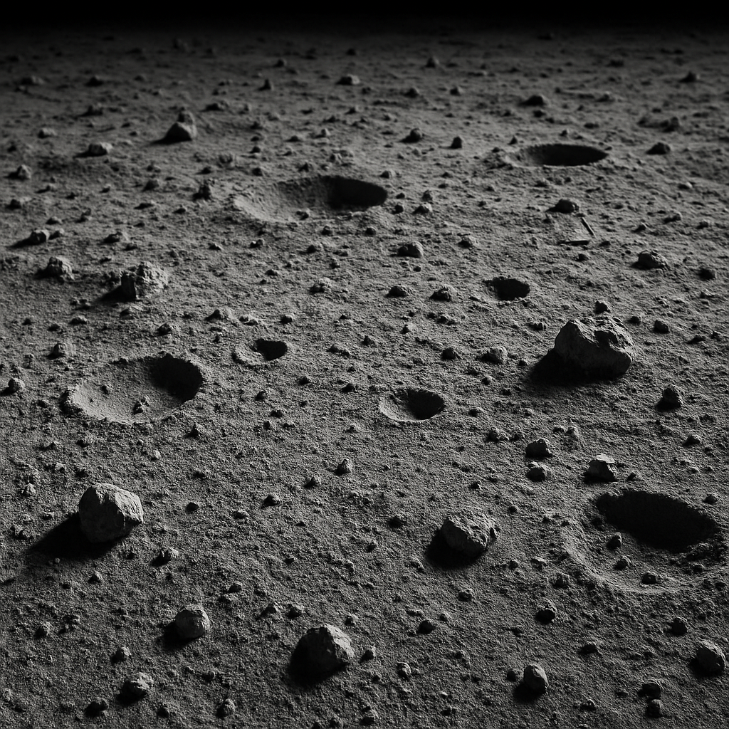 Yapay Zeka Tarafından Görselleştirilmiş Ay'ın Yüzeyinde Regolit Görseli.