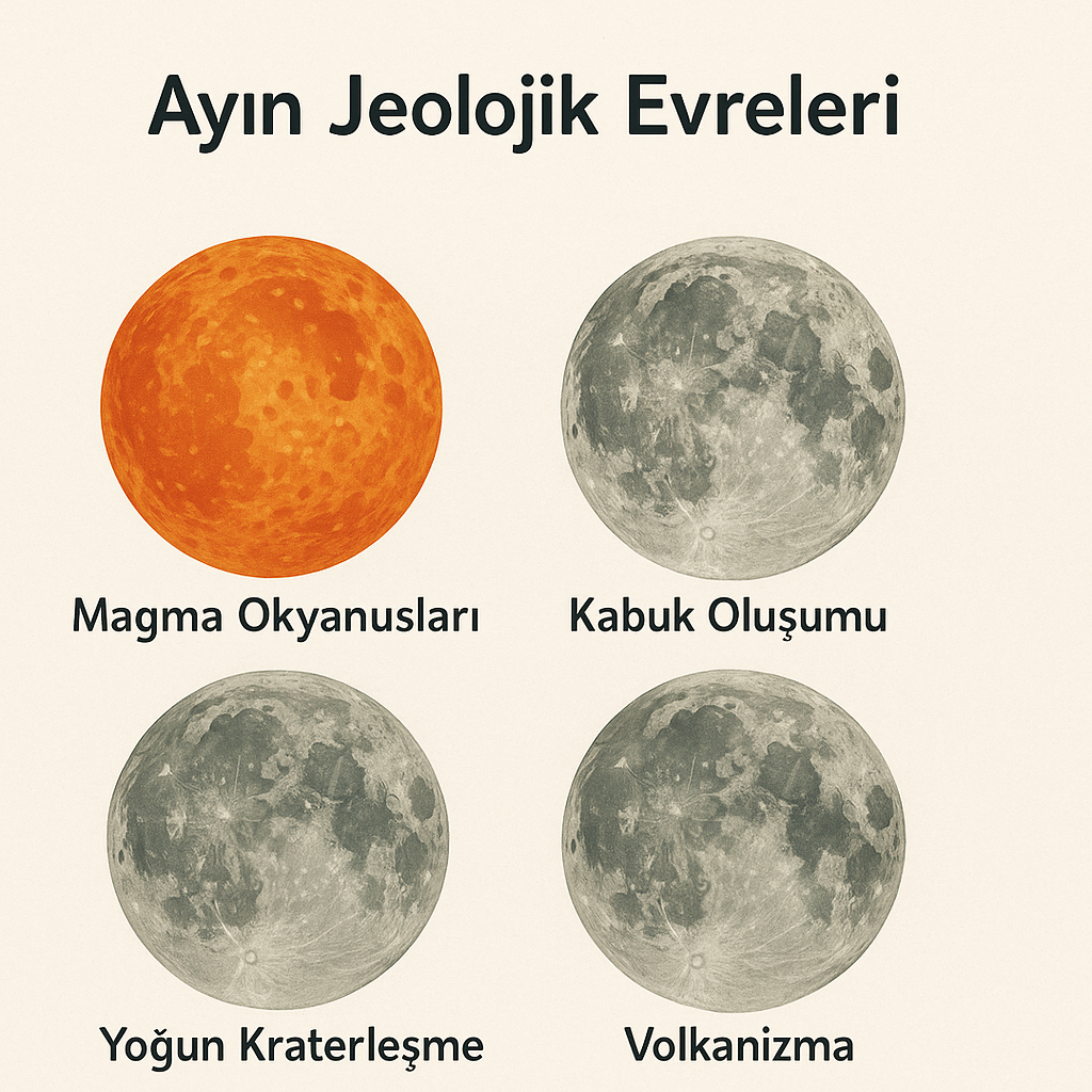 Ay’ın jeolojik evrimi dört ana döneme ayrılır: