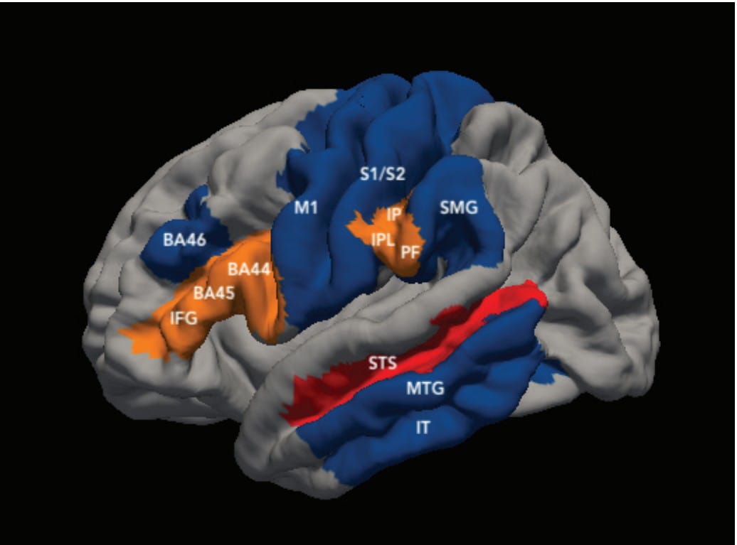 şekil1;Ayna nöronların serebral korteks üzerindeki yerleşimi