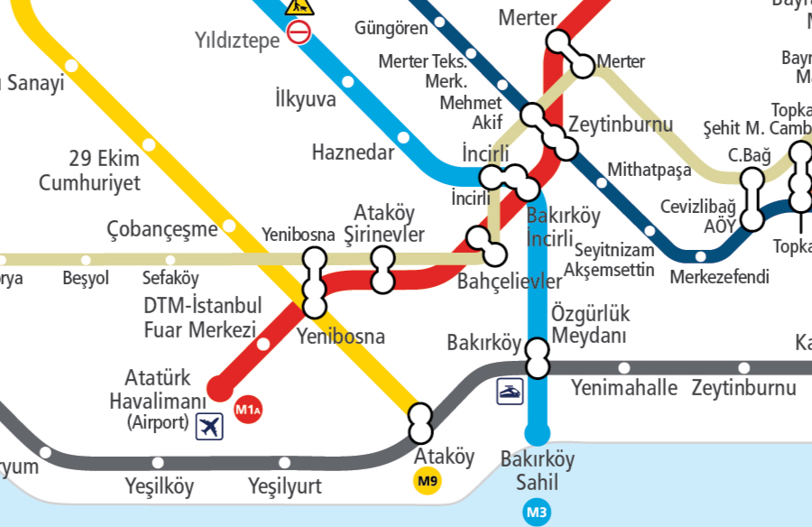 - M3 Metro Hattı: Başakşehir - Kayaşehir - Kirazlı güzergâhında hizmet veren metro hattıdır. İncirli, Haznedar, İlkyuva ve Yıldıztepe durakları ilçe sınırları içindedir.
