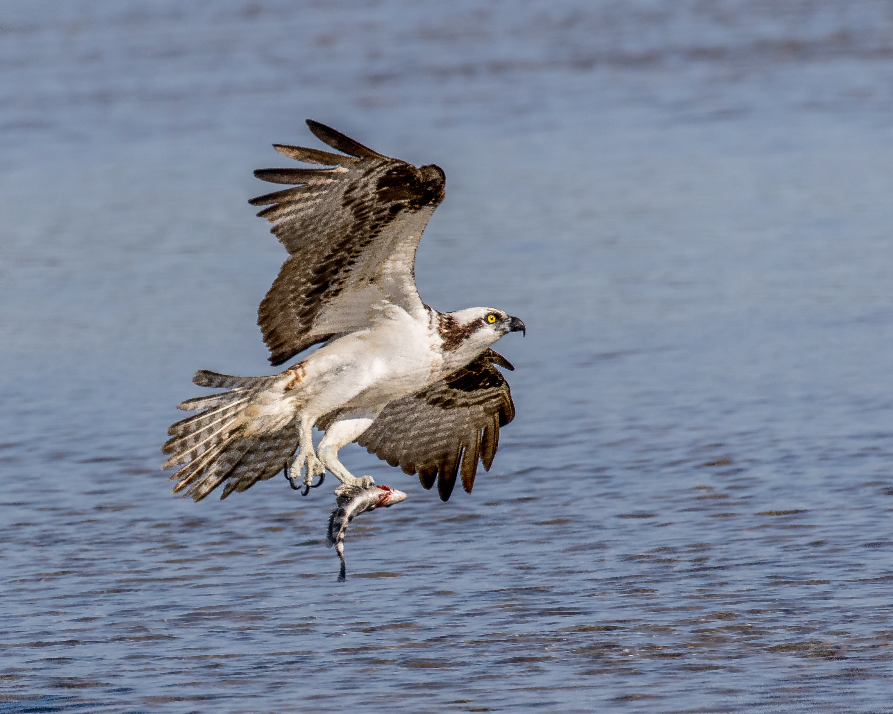 Ayak başparmağının geriye dönebilen yapıda olması, avı iki ayak parmağı önde, ikisi arkada kavrayabilmesini sağlar. Uçuşta kanatları uzun ve dar, uçuş hattı boyunca bilek hizasında koyu renkli leke ile karakterizedir; bu yapı, kuşun siluetini uzaktan martıya benzer hale getirir.