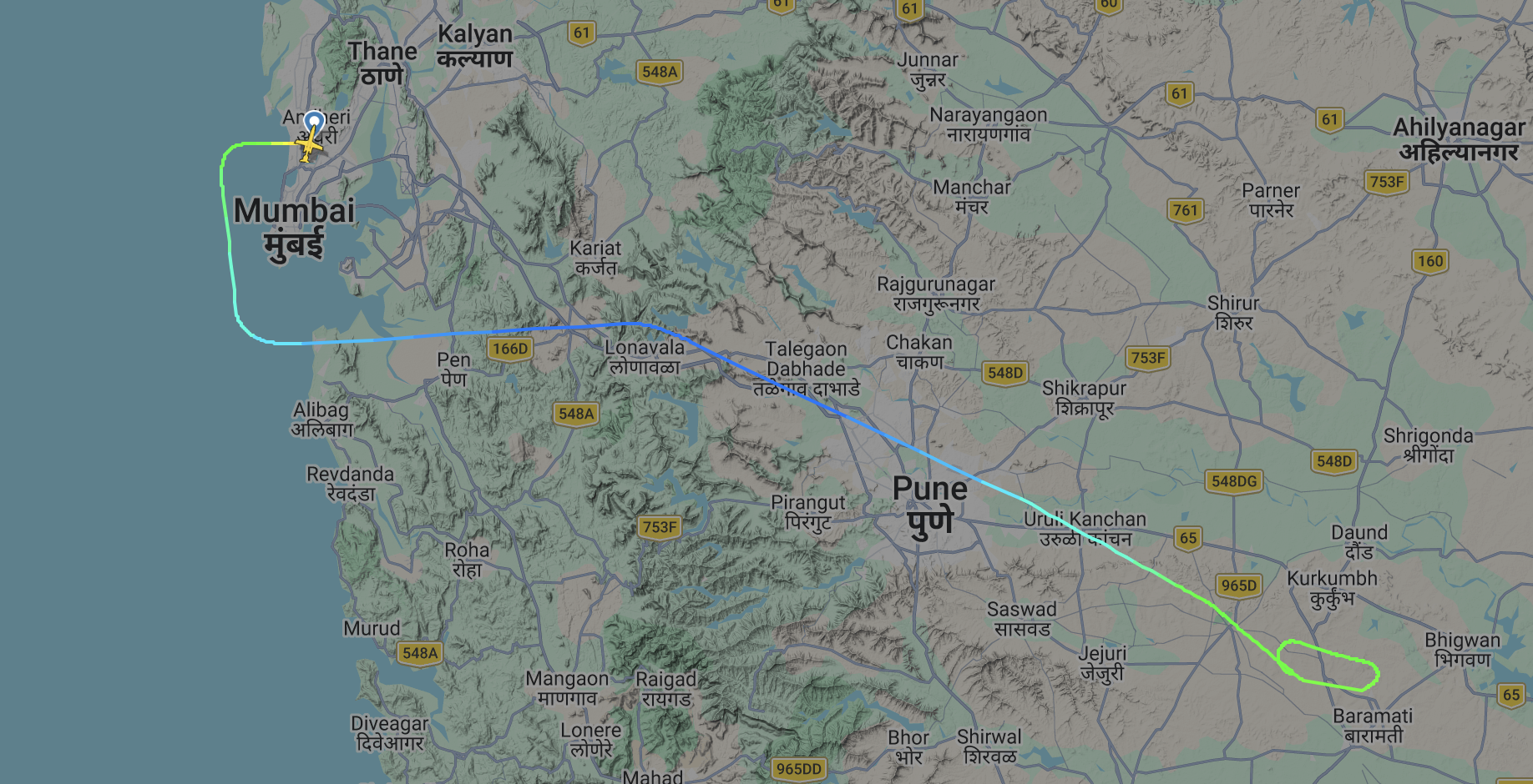 Learjet 45 tipi uçak, VT-SSK tescil numarasıyla 28 Ocak 2026 sabahı Mumbai’den saat 08.10’da havalanmıştır. Uçak, Maharashtra’nın Pune ilçesine bağlı Baramati Havaalanı'na iniş yapmak üzere planlanmıştır. FlightRadar verilerine göre, uçak 08.30 civarında ilk iniş denemesini yapmış, düşük görüş nedeniyle başarısız olmuştur. 08.42’de ikinci yaklaşma gerçekleştirilmiş, uçak 08.45 civarında radar bağlantısını kaybetmiştir.