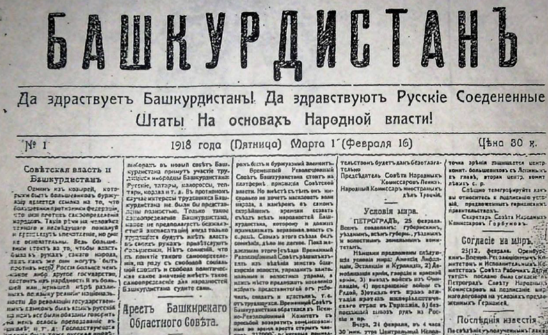 Başkurdistan Gazetesi. 01.03.1918. Yaşasın Başkurdistan! Yaşasın Halk Gücü Temelindeki Rus Birleşik Devletleri! Haberi (Taner Gür)【3】
