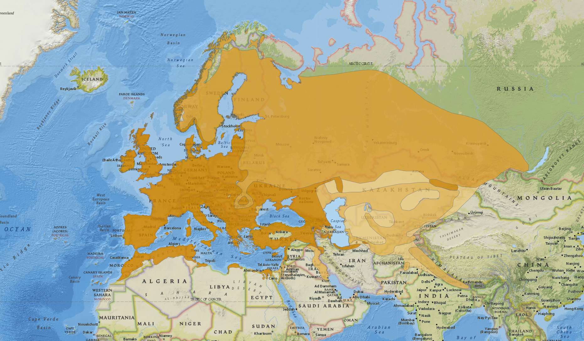 Bayağı ispinozun dağılım haritası (Fotoğraf: iucnredlist.org)