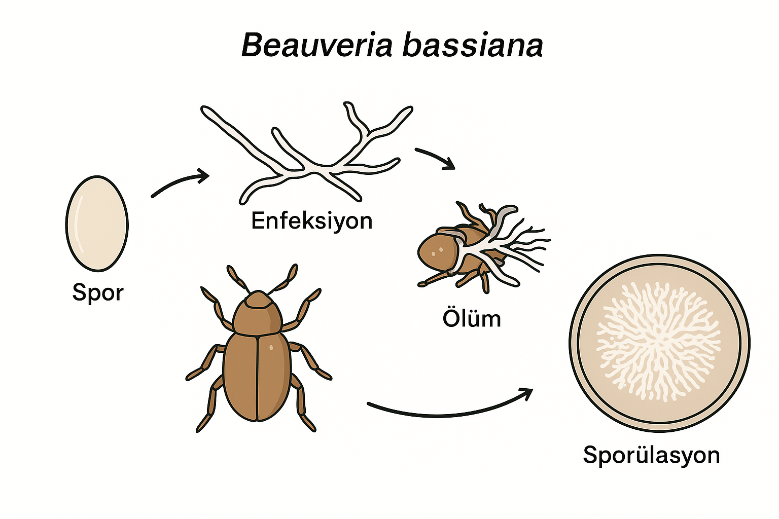 B. bassiana’nın biyolojik döngüsü (Yapay zeka ile oluşturulmuştur.)