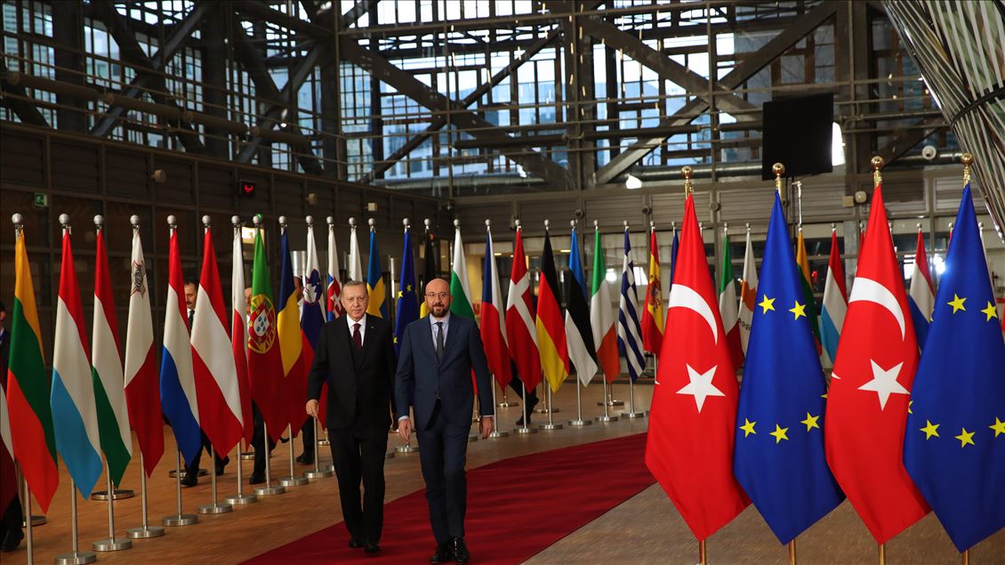 Türkiye Cumhurbaşkanı Recep Tayyip Erdoğan, Brüksel’de Avrupa Birliği Konseyi Başkanı Charles Michel iİle Birlikte (Anadolu Ajansı)