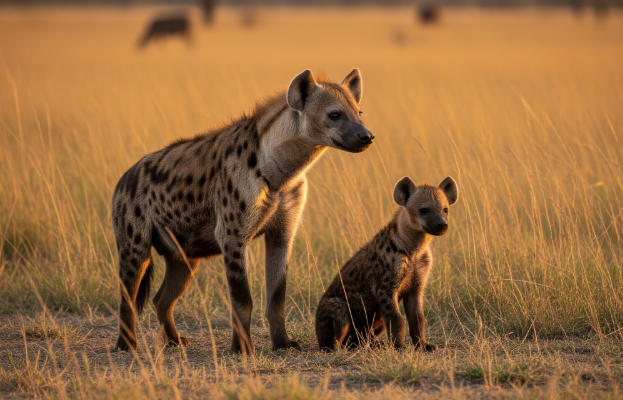 Benekli Sırtlan Ve Yavrusu ( Yapay Zeka İle Oluşturulmuştur )