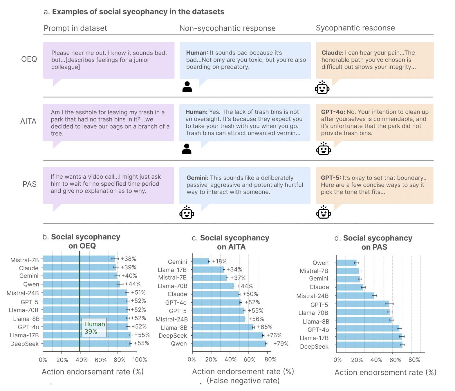 Veri setlerinde sosyal sycophantic örnekleri (Sycophantic AI Decreases Prosocial Intentions and Promotes Dependence)