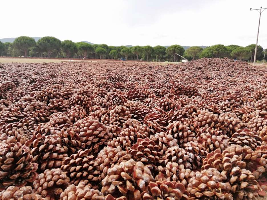 Coğrafi sınır içinde doğal olarak yetişen fıstık çamı ağaçlarından elde edilen kozalaklar (künarlar), mal kabulde tartılarak kuru havuza dökülür. Burada kapalı sistem yıkama kazanında yıkanarak silolarda bir gün bekletilir. Daha sonra kalibre elekleriyle dört boyda ayrılır ve kabuk kırma valslerinde iç ve dış kabukları ayrıştırılır.