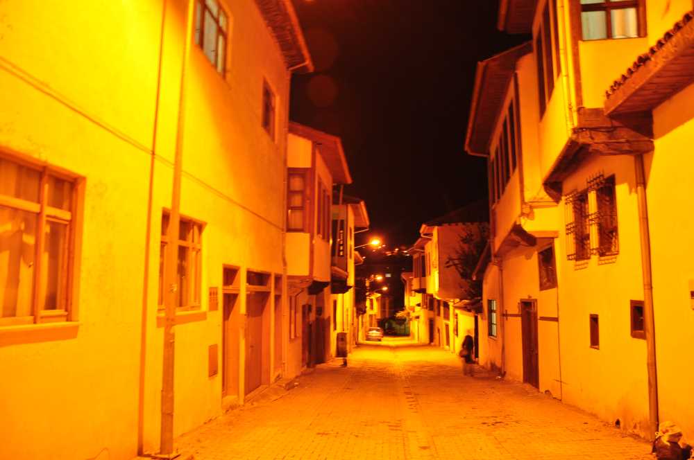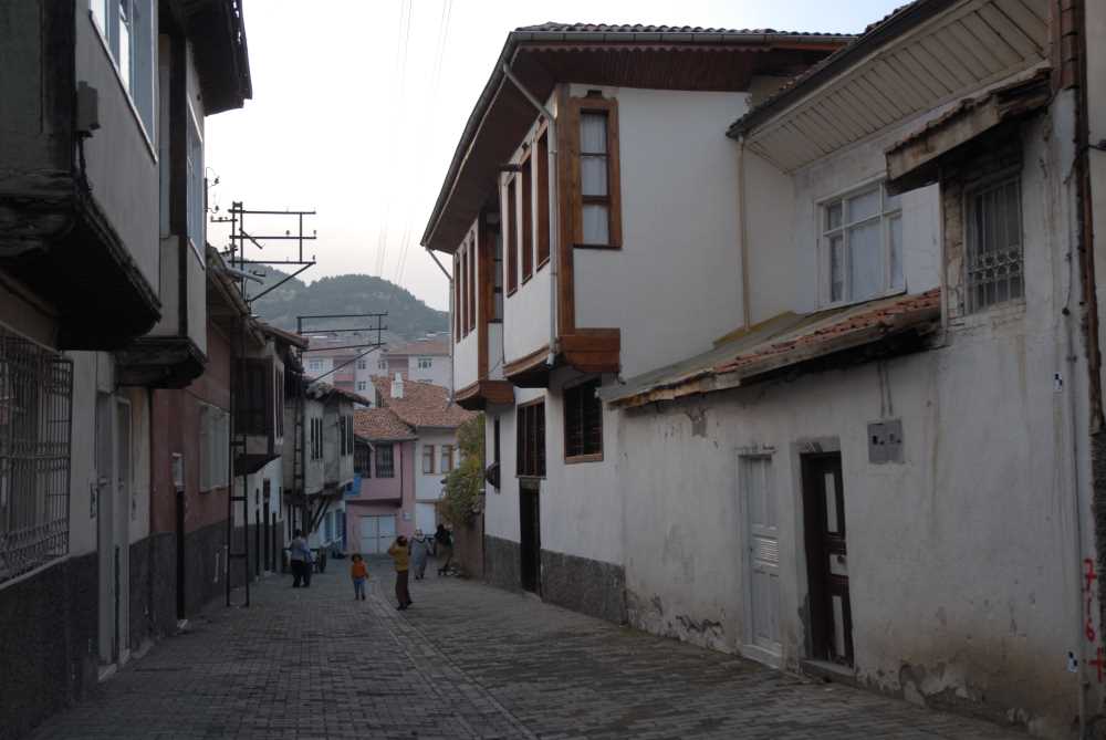 Bey Sokağı'ndaki yapılaşma, geleneksel Osmanlı-Türk ev mimarisine özgü taş zemin katlı, ahşap çıkmalı, cumbalı ve avlulu konutlardan oluşmaktadır. Özellikle cumbalı cephe düzenlemeleri, ahşap kepenkli pencereler ve geniş saçak yapılarıyla dikkat çeken evler, sokağın özgün dokusunun korunmasını sağlamıştır. Sokağın zemin kaplaması da taş döşemelidir ve geleneksel şehir sokaklarının izlerini taşımaktadır.