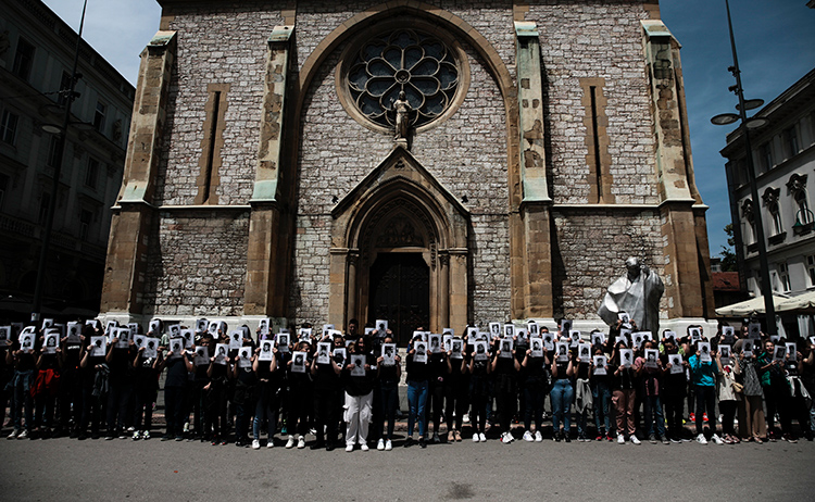 Saraybosna'da Gerçekleştirilen Törende Savaşta Öldürülen Çocukların İsimleri ve Ölümlerinden Sorumlu Olan Savaş Suçluları Radovan Karadzic ve Ratko Mladic'in Fotoğrafları Asıldı (Anadolu Ajansı)