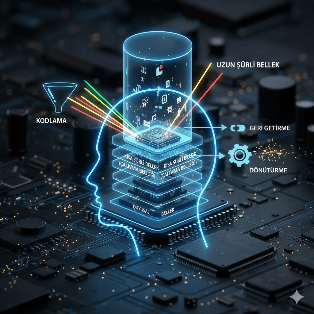 Bilgi İşlem Kuramına Göre Zihinsel Süreçer ve Bellek Yapıları (Yapay Zeka ile Oluşturulmuştur)