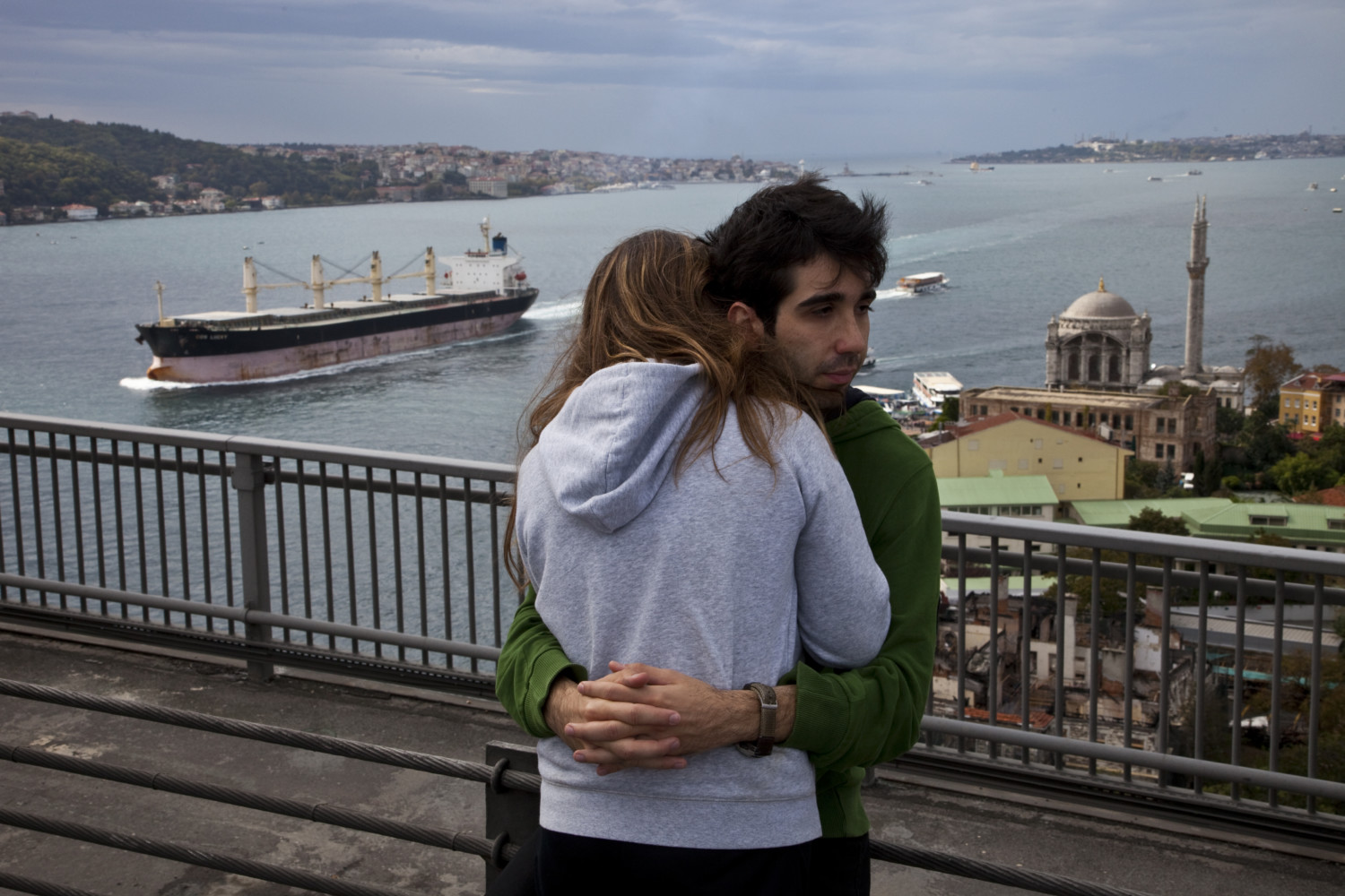 Boğaziçi Köprüsü'nde, Avrasya Maratonu sırasında köprüde çift. İstanbul, Türkiye. 2009. Bruno Barbey | Magnum Photos
