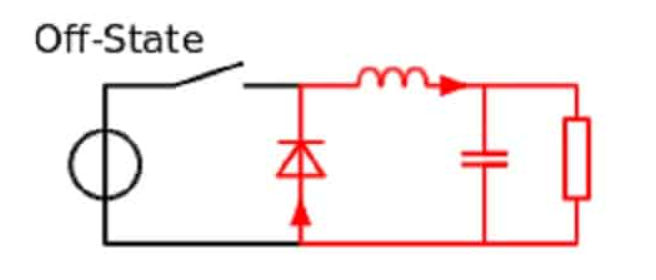 Şekil 3. Buck Dönüştürücü İletimde Değilken. (Kaynak: Mühendis Beyinler)