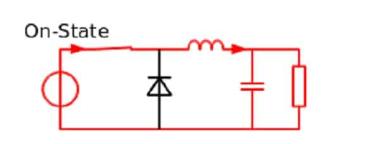 Şekil 2. Buck Dönüştürücü İletim Modunda. (Kaynak: Mühendis Beyinler)