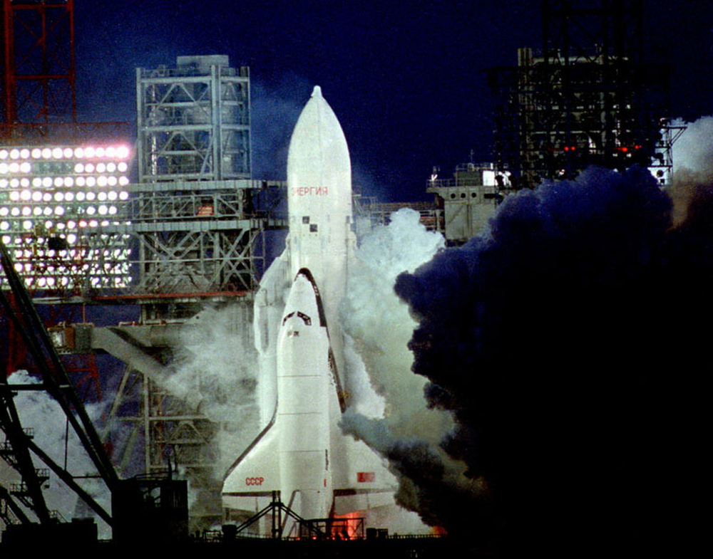 Buran ve Energia 1L, Sistemin Yörünge Test Uçuşu Sırasında Kalkış Yapıyor (buranarchive)
