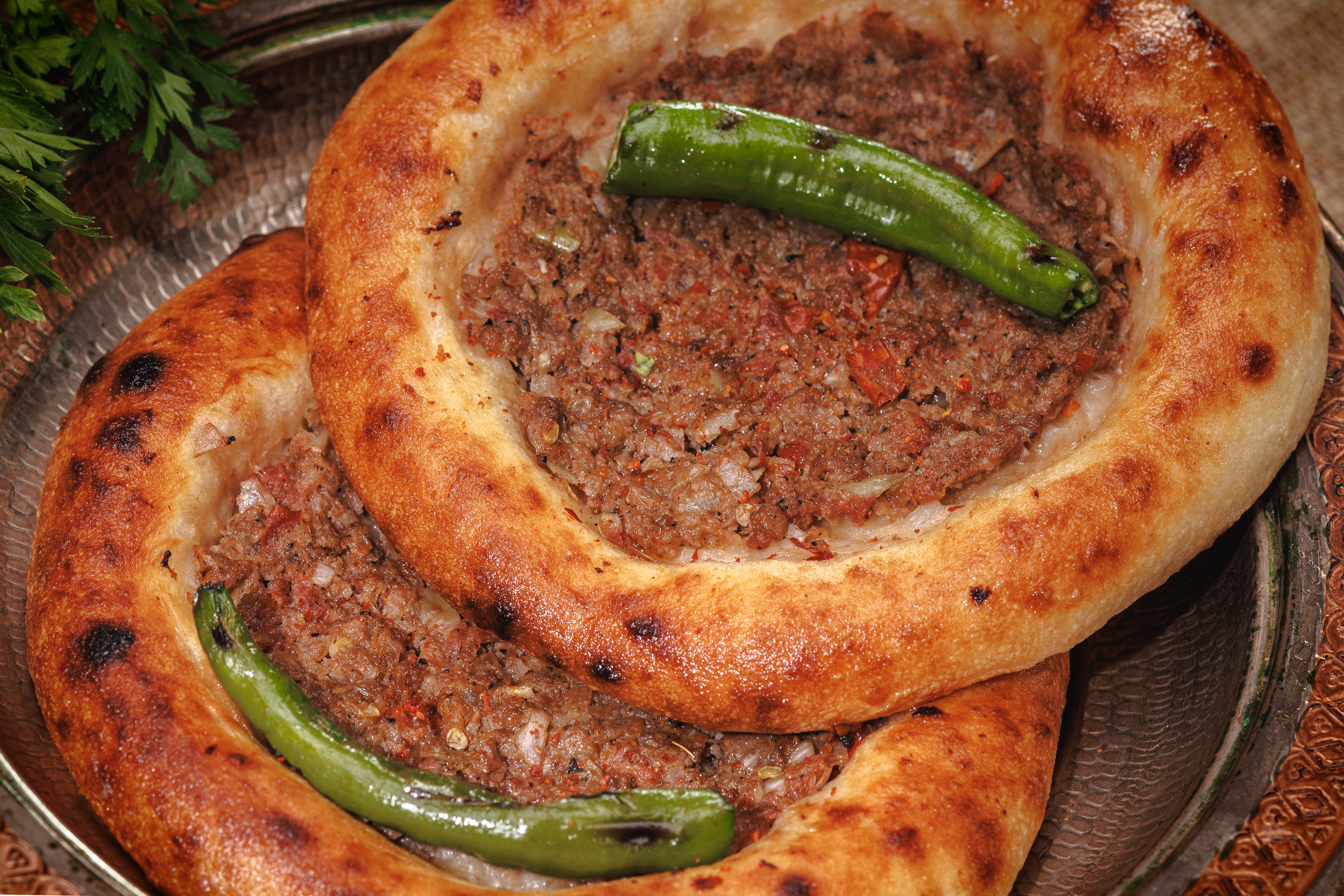 Üretim aşamasında, un hamur teknesine alınır; hamur kazanı dönerken yavaşça su eklenir. Ayrı bir kapta eritilmiş yaş maya ve tuz, hamura ilave edilir. Karışım yaklaşık 20-25 dakika boyunca kulak memesi kıvamına gelene kadar yoğrulur. Hazırlanan hamur kazanda 10-15 dakika dinlendirilir, ardından kazandan çıkarılıp yaklaşık yarım saat daha bekletilir. İç harç hazırlanırken dana eti, kavram yağı, soğan ve tercihe bağlı olarak ekmek, kıyma makinesinde çekilir; ardından tuz, dağ kekiği ve tercihe göre eklenen baharatlarla karıştırılır. Son aşamada karışıma su ve domates eklenir.