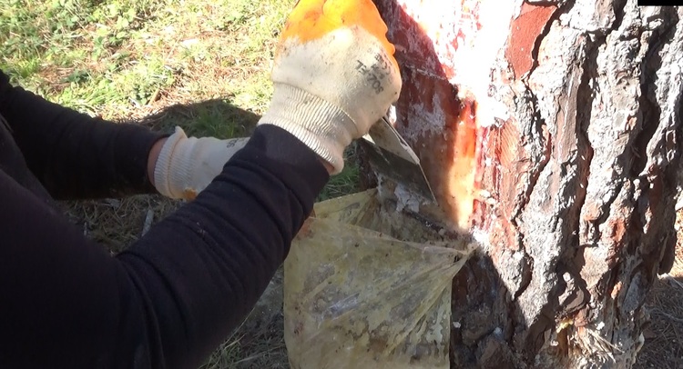- Akma Reçine: Canlı ağaç gövdesine açılan yaralardan doğrudan sızarak toplanan reçinedir. Türkiye’de yaygın olarak kullanılan bu yöntemde, özellikle Asit Pasta Yöntemi öne çıkar. Bu yöntemde kabuk ve kambiyum tabakası soyularak açığa çıkan diri odun yüzeyine sülfürik asit içeren bir karışım uygulanır ve böylece reçine salgısı teşvik edilir. Bu süreçte kullanılan materyaller arasında kızıllatma rendesi, pencere açma rendesi, polietilen poşetler, zımba teli ve %35 sülfürik asitli pasta bulunmaktadır.