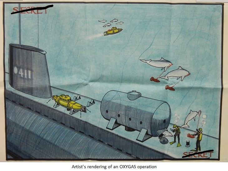 1960’lı yıllarda SSCB ve ABD Deniz Donanmaları su altı mayın ve kayıp envanter tespiti ile düşman dalgıçların bulunması maksatlı olarak yunus balıklarını eğitici programlar başlattılar. Devamında OXYGAS adlı gizli bir proje kapsamında düşman gemilerine patlayıcı cihaz yerleştirilmesi üzerine CIA tarafından eğitim faaliyetleri sürdürüldü.