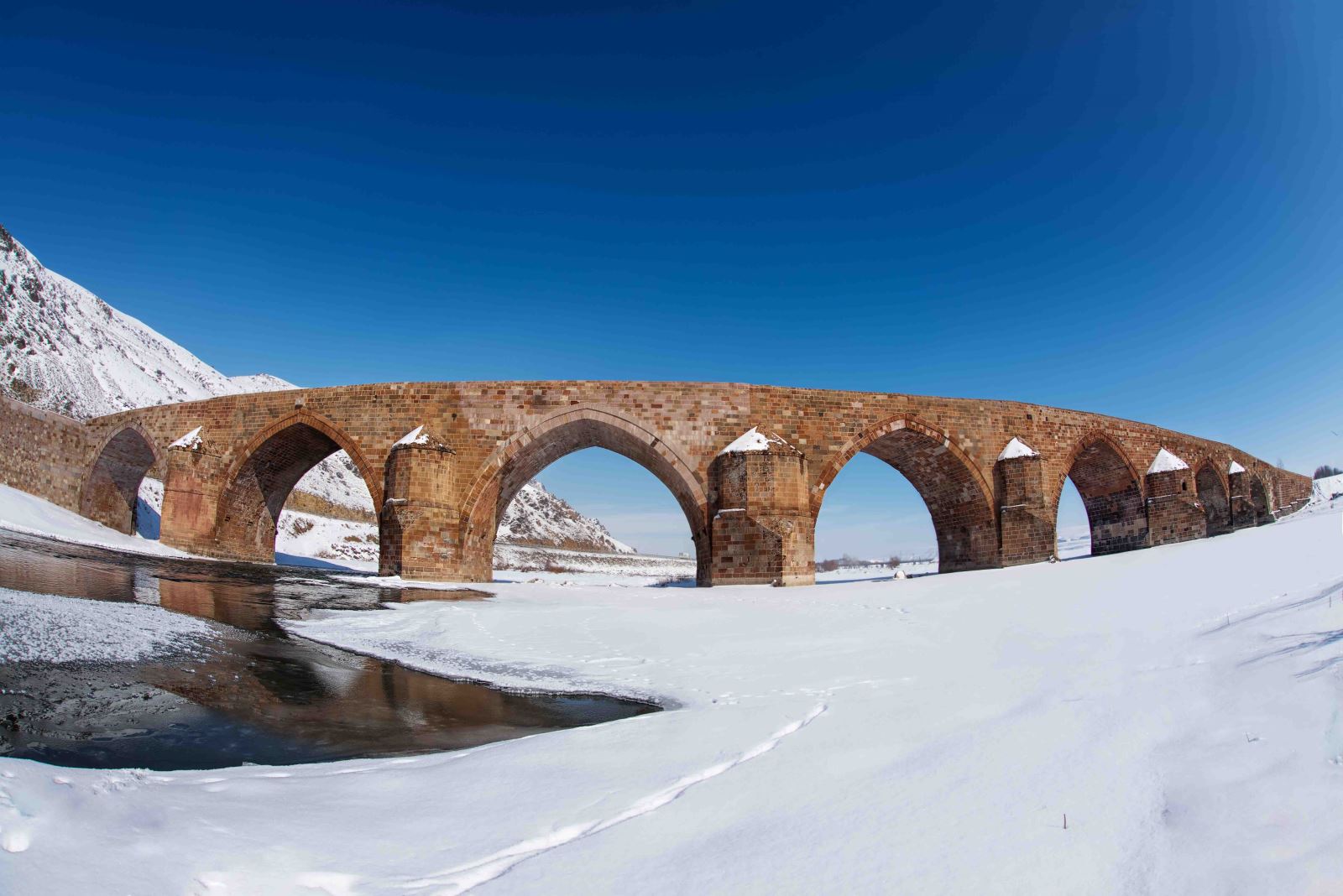 Köprü, 128 metre uzunluğunda ve 8,5 metre genişliğindedir. En büyük kemer açıklığı 13 metre ile 16,8 metre arasında farklı kaynaklarda belirtilirken, en yüksek noktası 30 metredir. Yedi yuvarlak kemerli gözden oluşan yapının ilk gözü, son yıllardaki onarımlar sırasında kapatılmıştır. Köprünün kemerleri siyah, kırmızı ve gri renkli kesme taşlardan yapılmıştır. Yapımında özgün mühendislik teknikleri kullanılmıştır; köprü ayaklarının altına ardıç ağaçları döşenerek batması engellenmiş, ayrıca ağırlığını hafifletmek amacıyla tampon duvarları arasında boşluklar bırakılmıştır.