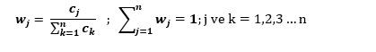 Ağırlıkların Belirlenmesi: Her kriterin ağırlığı, hesaplanan bilgi miktarının toplam bilgi miktarına oranı olarak belirlenir.