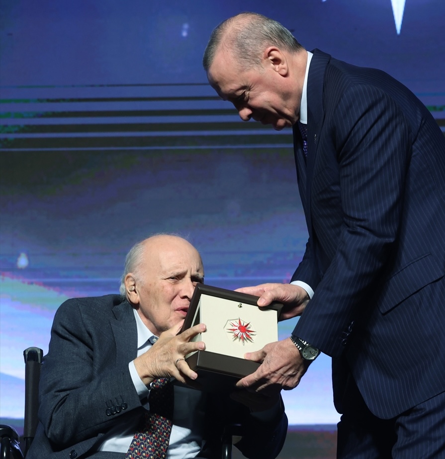 Cumhurbaşkanı Erdoğan, müzik ödülünü Prof. Dr. Yalçın Tura'ya tevcih ediyor, 18 Aralık 2025 - (Anadolu Ajansı)