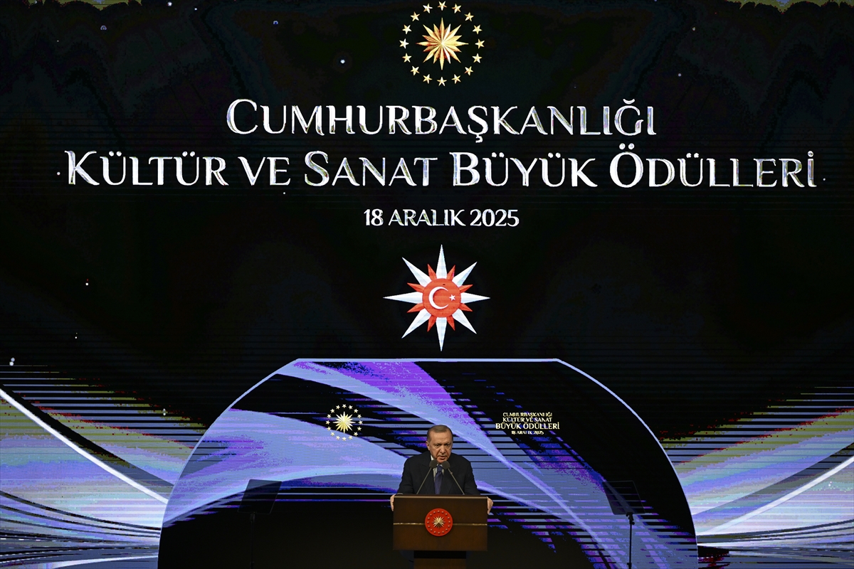 Cumhurbaşkanı Recep Tayyip Erdoğan Cumhurbaşkanlığı Kültür ve Sanat Büyük Ödülleri Töreni'nde konuşma yapıyor, 18 Aralık 2025 - (Anadolu Ajansı)