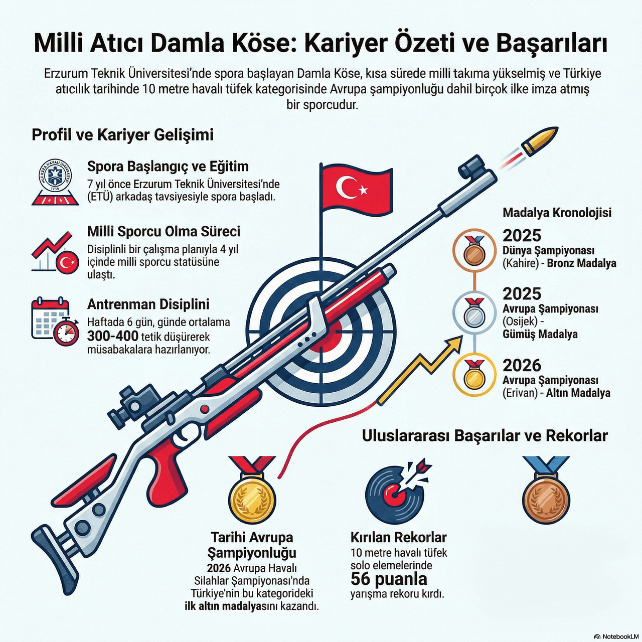 Mart 2026'da Ermenistan'ın Erivan kentinde düzenlenen Havalı Silahlar Avrupa Şampiyonası'nda kadınlar 10 metre havalı tüfek solo kategorisinde mücadele eden Damla Köse, elemeleri geçerek finale kalmıştır. Final karşılaşmasında İsviçreli rakibi Vivien Joy Jaeggi'yi 15-14 skorla yenen sporcu, altın madalya kazanarak Avrupa şampiyonu olmuştur. Köse'nin bu birinciliği, Türkiye'nin 10 metre havalı tüfek solo kategorisinde elde ettiği ilk Avrupa şampiyonluğu olarak resmi kayıtlara geçmiştir.