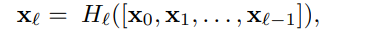 DenseNet mimarisinde her katmanın girdisi aşağıdaki gibi tanımlanır: