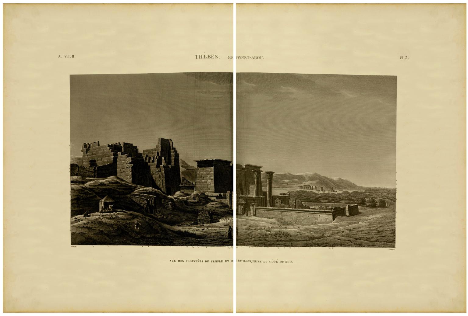 Arazi çalışmaları sırasında yapılan kalem eskizleri ve röleve ölçümleri, Paris’te bakıra aktarılırken standartize edilmiş; böylece daha sonra onarılmış, tahrip olmuş ya da erişimi kısıtlanmış çok sayıda yapının güncel araştırmalar için karşılaştırmalı “temel veri” niteliği korunmuştur. Anıtsal yapıların çevresel yerleşimleri, Nil kıyı şeritleriyle kurdukları ilişkiler ve kutsal alanların topografyaya yerleşimi de plan dizilerinde izlenebilir; bu bakımdan “Antiquités”, Mısır mimarisini yalnızca biçimsel bir katalog olarak değil, mekânsal bir ağ içinde belgeleme iddiası taşır.