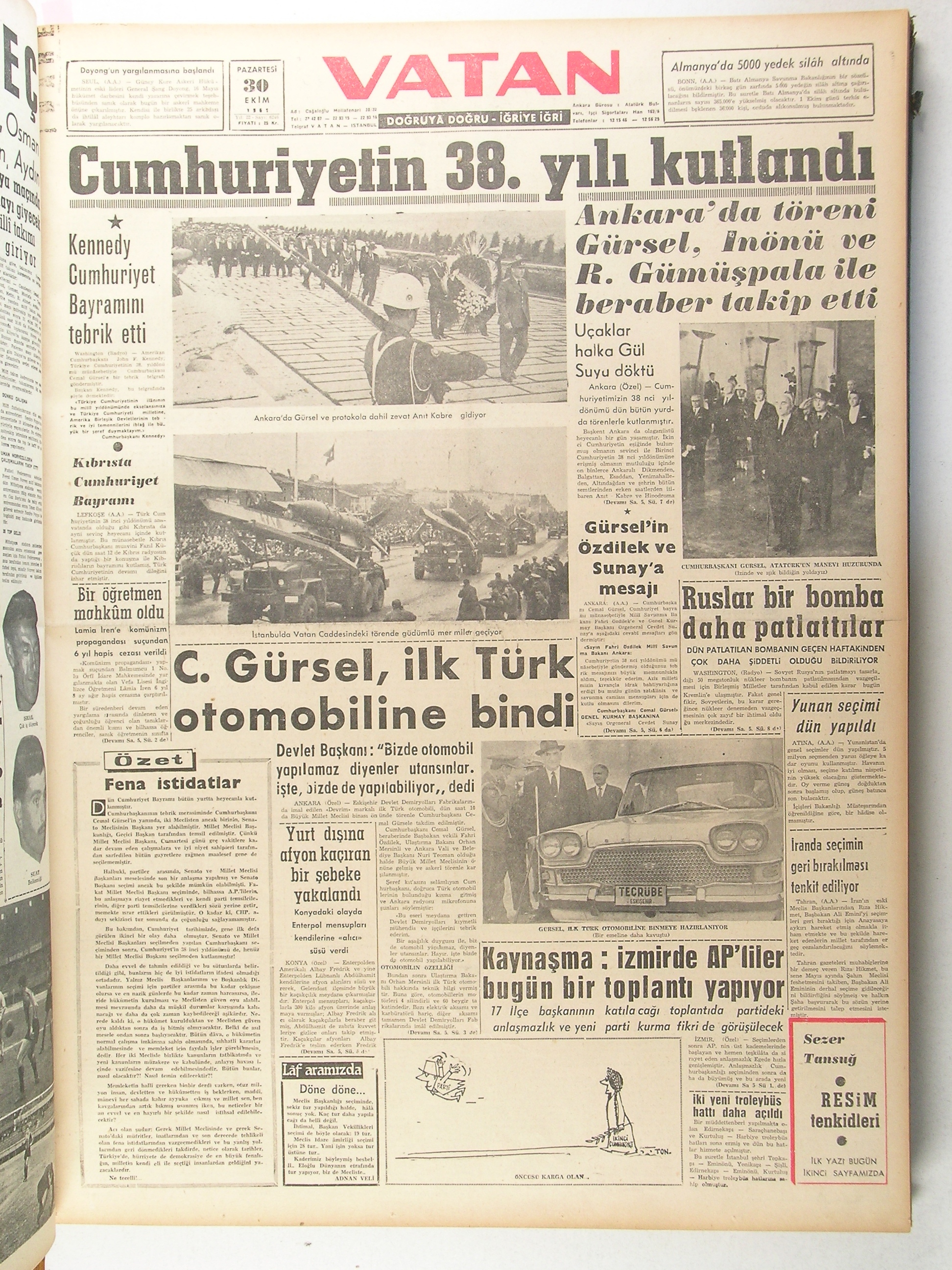 29 Ekim 1961’de, Devrim Arabası'nın son derece heyecan verici bir şekilde Cumhuriyet Bayramı törenine katılması planlanmıştı. Arabalar, Eskişehir'den sabahın erken saatlerinde yola çıktı. Bu önemli günde, arabaları taşıyan trenin hareketiyle birlikte, motorize trafik ekiplerinin eskortluğunda, arabaların yakıt ihtiyacı bilinmeden yola çıkılması önemli bir aksiliği de beraberinde getirdi.